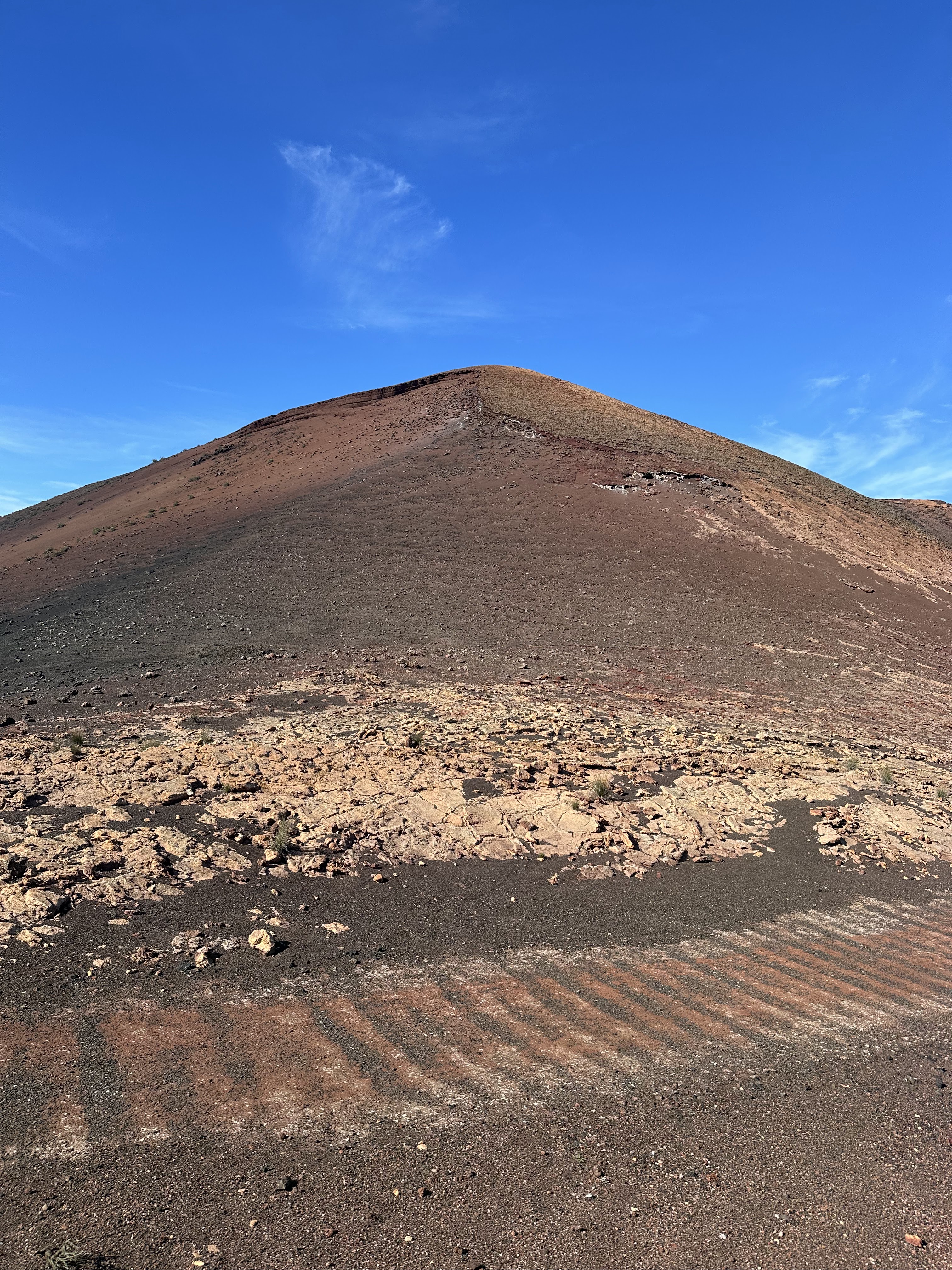 Desde allí fotos de esos hoyos cónicos donde se planta la vid y alguna panorámica también con la montaña Chupaderos detrás.