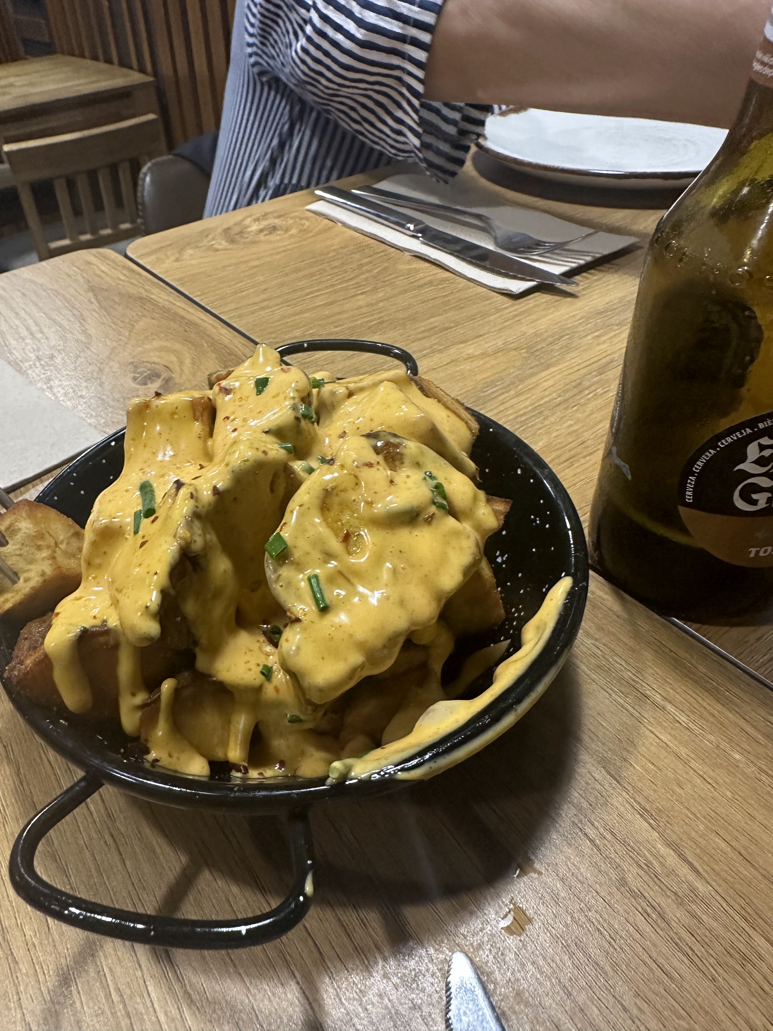 Cervezas a 2,50 eur. Cerveza 0.0 a 2,50 eur. Agua a 3 eur. Salimos a 26 eur p.p./3 personas.