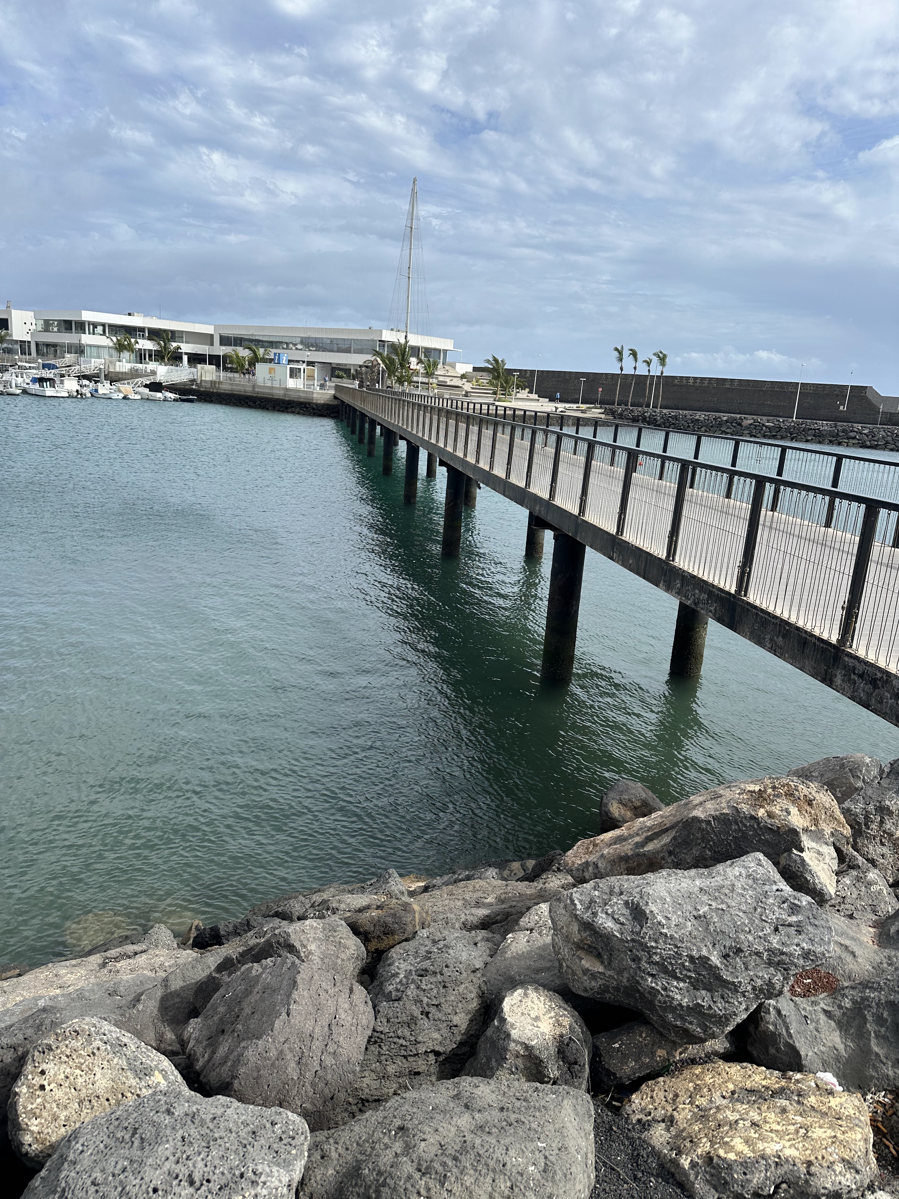 Puedes pasear por sus amplios espacios blancos, disfrutar de las vistas a la bahía y al puerto de Arrecife, o simplemente relajarte en su cafetería con enormes ventanales que ofrecen una variada carta de bocadillos y bebidas.