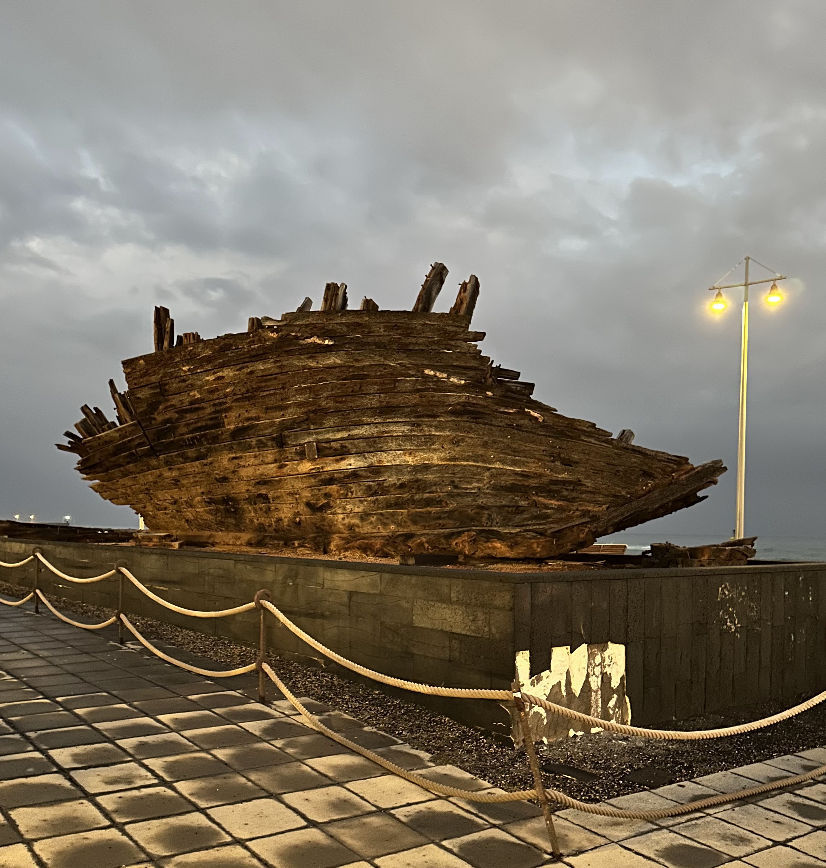 Se trata de una obra vanguardista, creada con tanques de agua de antiguos barcos pesqueros, que sorprende a todos los turistas que se acercan a ella.»