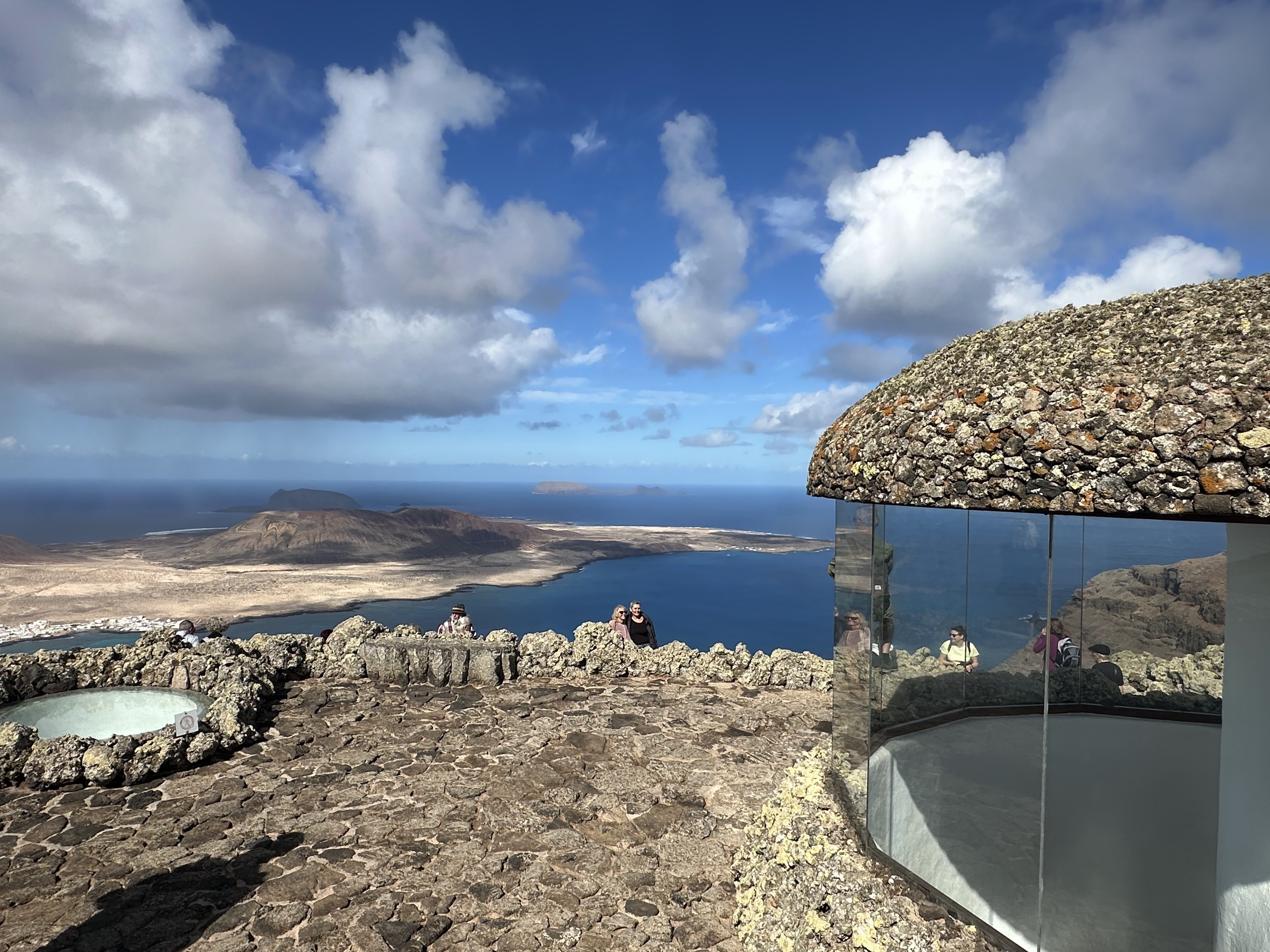 «Se encuentra a unos 479 metros de altura y es una de las obras más emblemáticas de César Manrique. El artista lanzaroteño creó un lugar de características propias, con una mimetización perfecta entre naturaleza, belleza y arte, para ofrecer a los turistas un mirador donde contemplar el Río, que es un estrecho de mar que separa Lanzarote y La Graciosa, y el precioso paisaje que rodea a la isla.