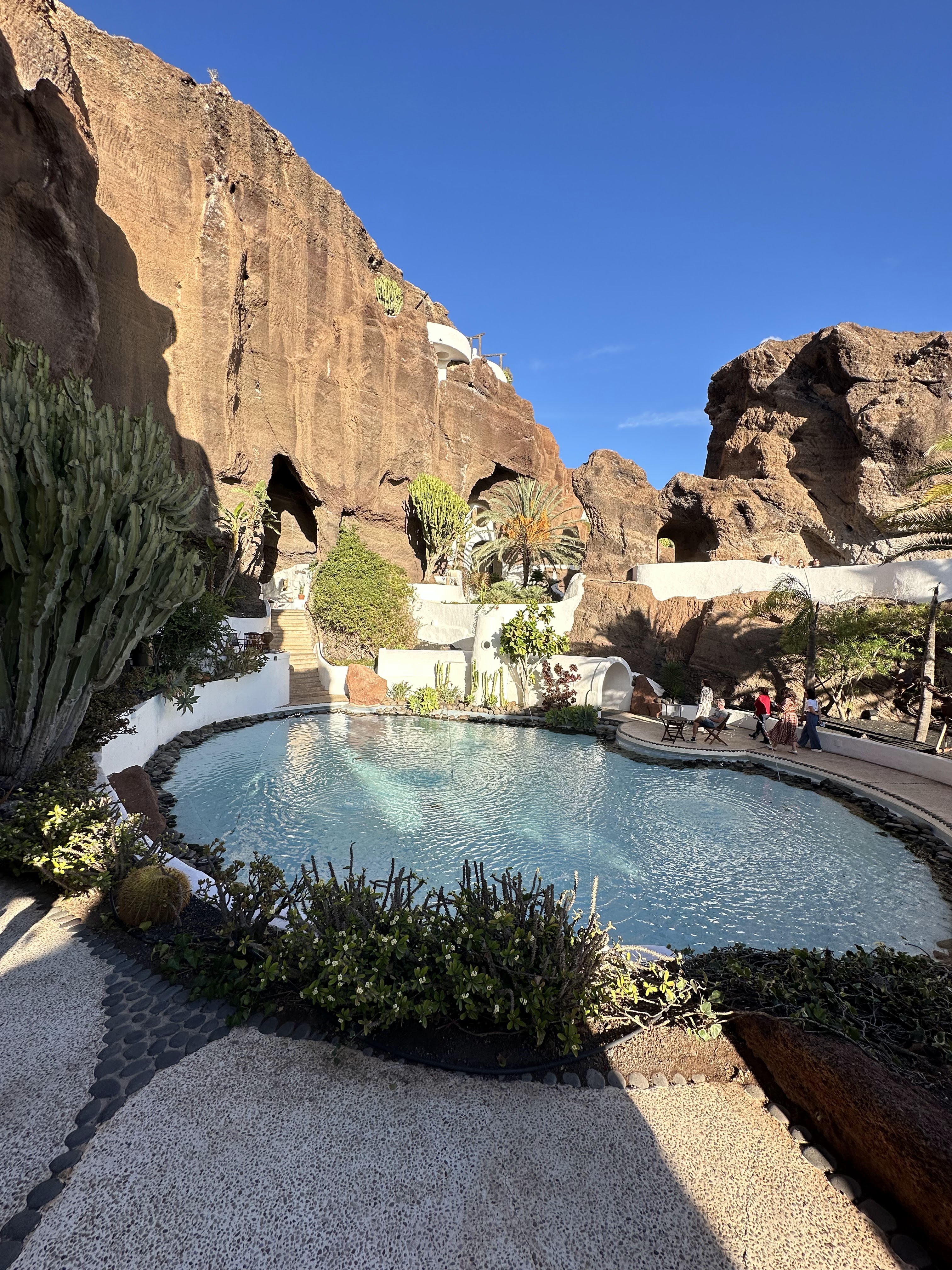 Manrique pensó en el bienestar del entorno natural, haciendo que se viera lo menos alterado posible, y de todos los que quisieran disfrutar de este mágico enclave. Por ello, construyó un restaurante integrado en el monte y dos cúpulas, sobre las que echó tierra y ha crecido hierba, de manera que el edificio se funde con la propia montaña.