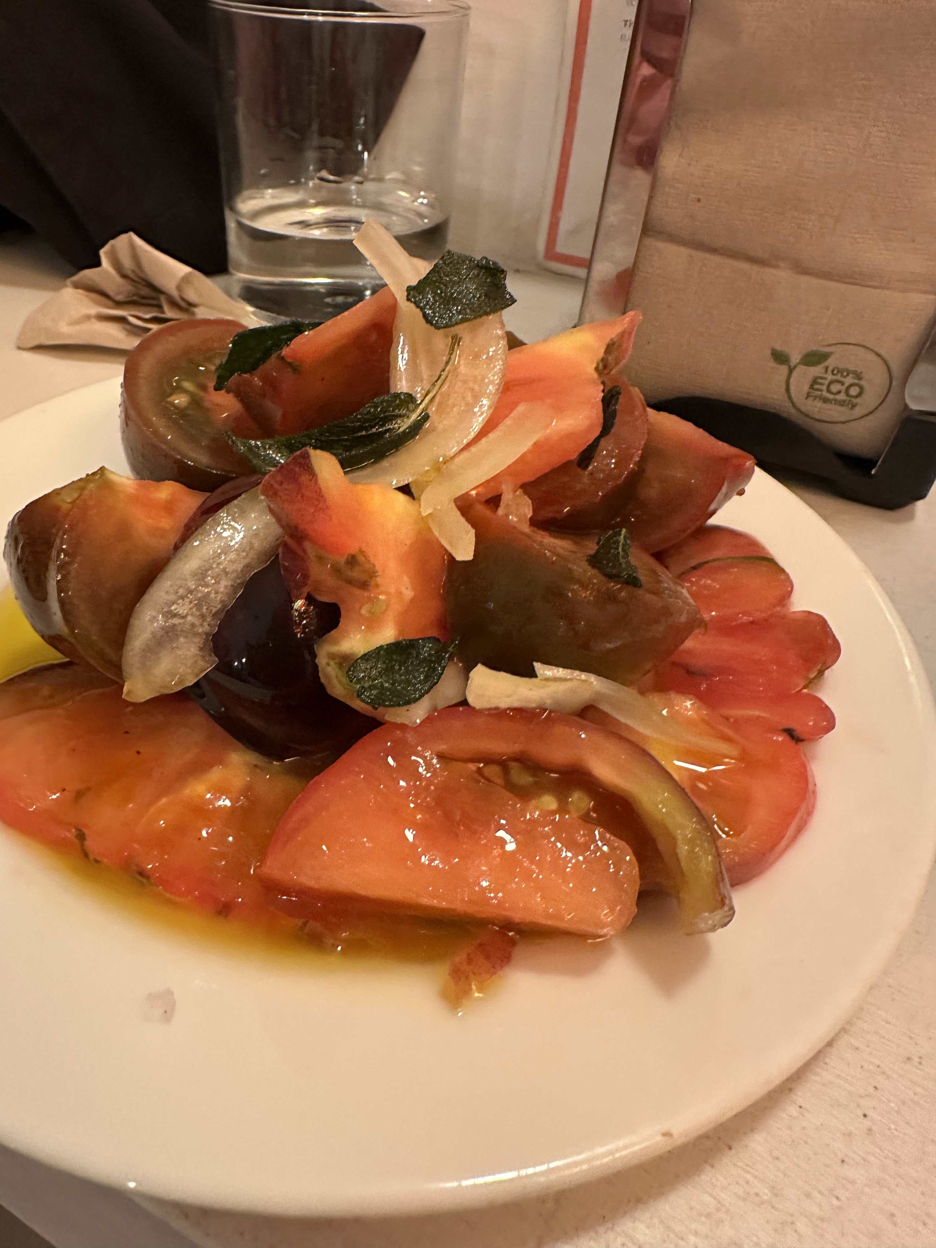 *Ensalada de tomates de Lanzarote, ricos; un poco de una buena cecina de león y, un tiernísimo y grande escalope de pollo de corral. Salimos a 16/18 eur p.p./3 personas.