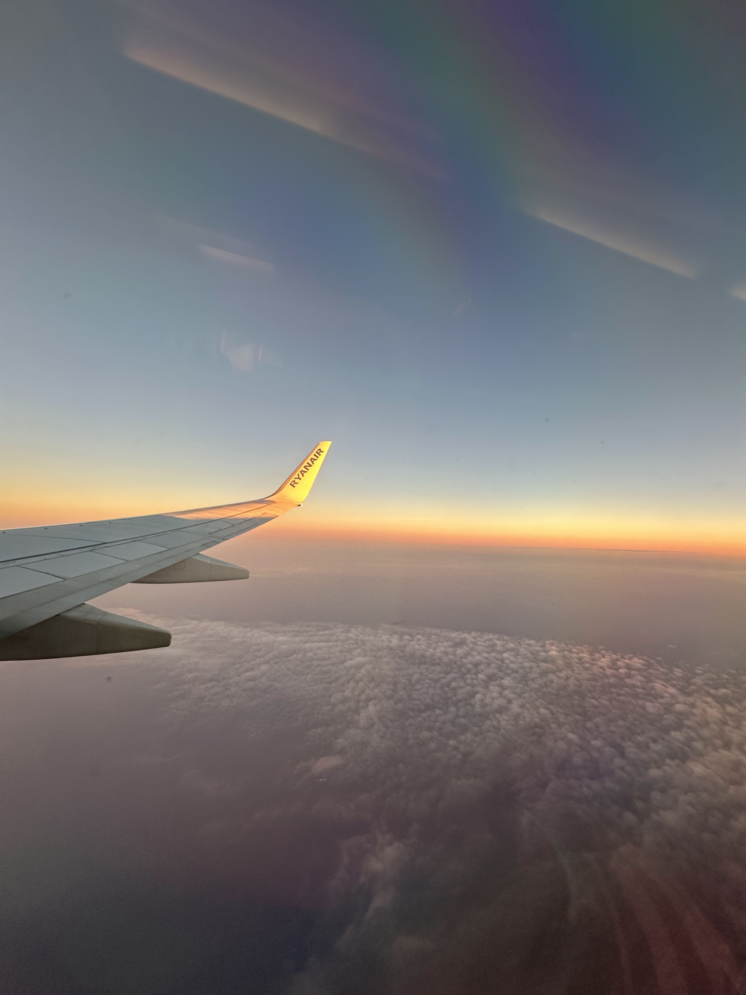 Bonitas vistas del atardecer desde el ala del avión y llegada a 20:45h. hora ya española.