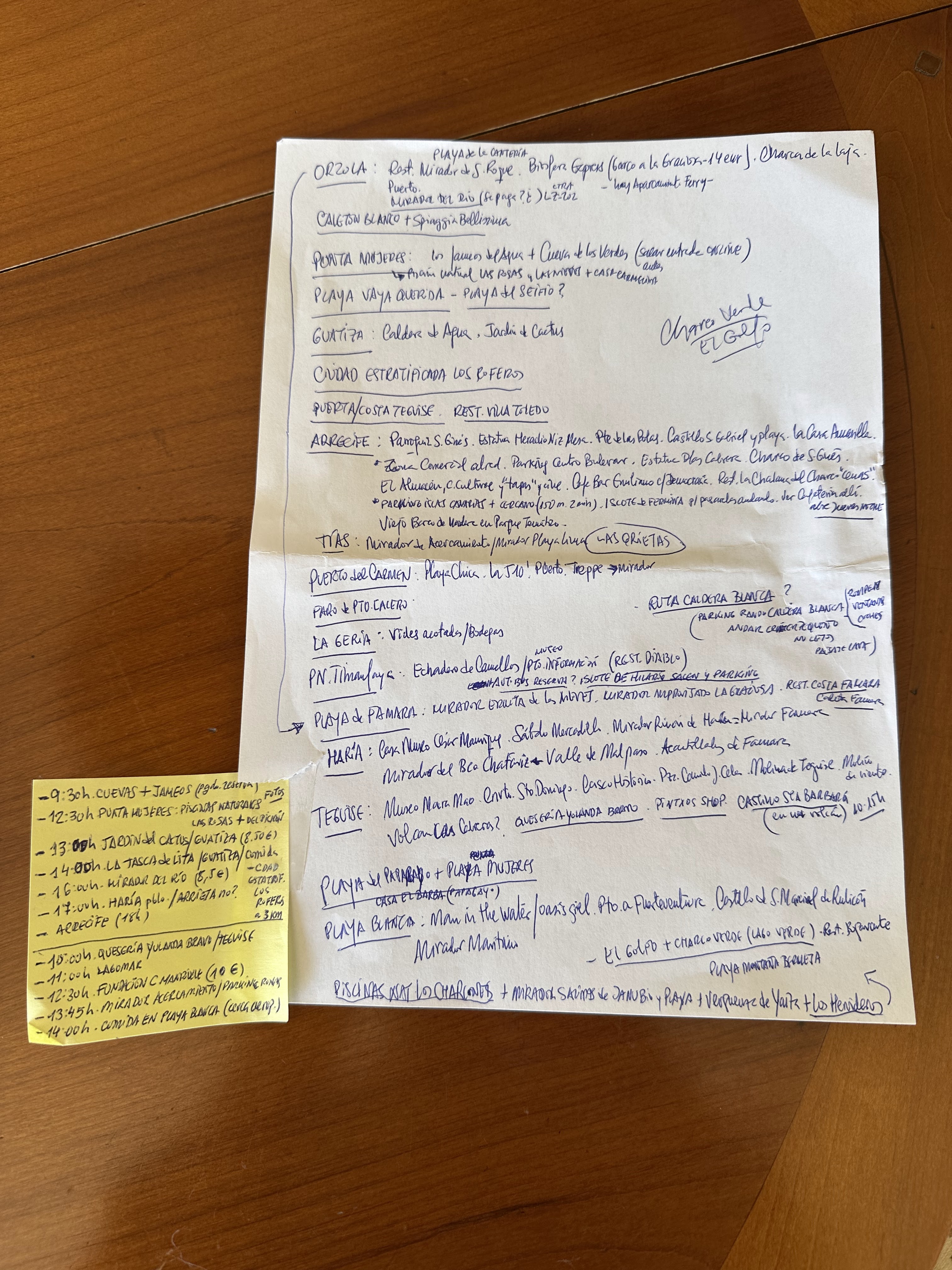 *También a parte de éstos, se puede ver en mi «chuleta» (a continuación) que algunas cosas quedaron pendientes, pero es que ese día (jueves 13) de alerta naranja por la borrasca Claudia, nos hizo cambiar de planes y dejar de ver algo de lo previsto.