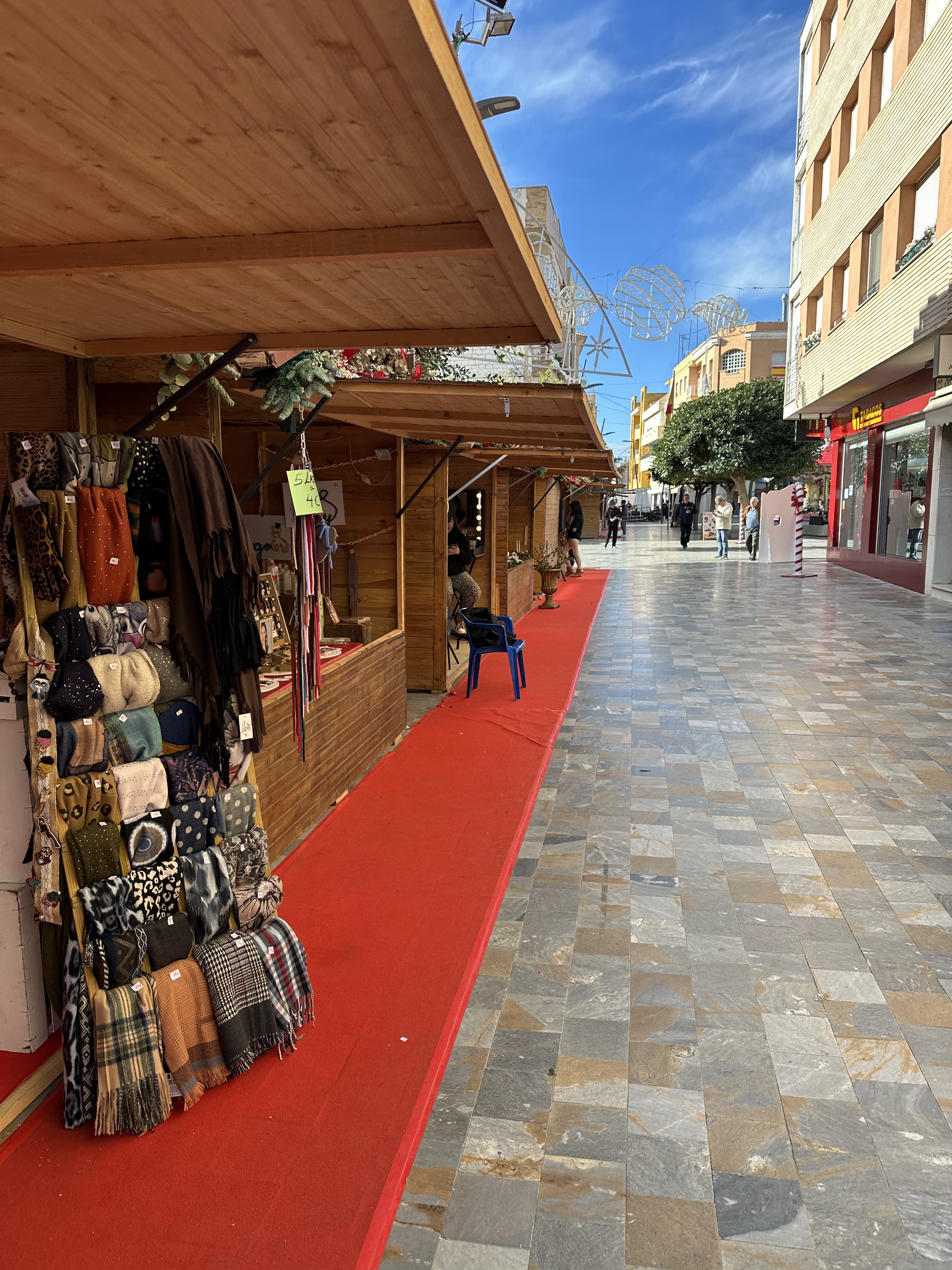«Precisamente, la plaza de la Constitución es también el escenario de la Feria de Navidad, en la que participan casi una veintena de comercios, artesanos y asociaciones locales; abre cada jornada de 10.30 a 14.00 horas y de 17.00 a 20.30 horas. Además, se ha instalado un escenario en el que a diario se llevan a cabo representaciones, actuaciones musicales y propuestas para diferentes públicos.»