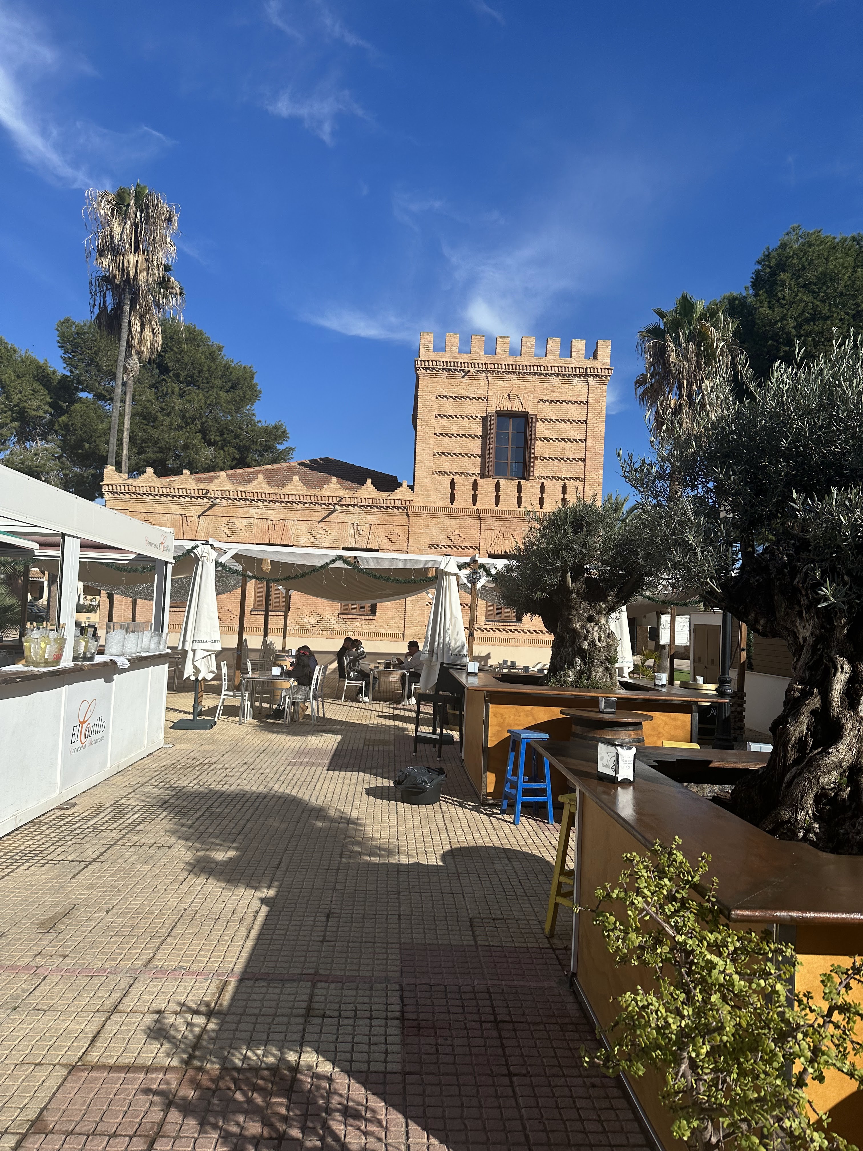 El Bar/Restaurante El Castillo justo en un lado de éste, con ambientazo música y preparando aperitivo de Nochebuena (tablas de quesos y embutidos, marisco cocido y plancha en marcha también, etc….y zona con hielo llena de cervezas y refrescos).