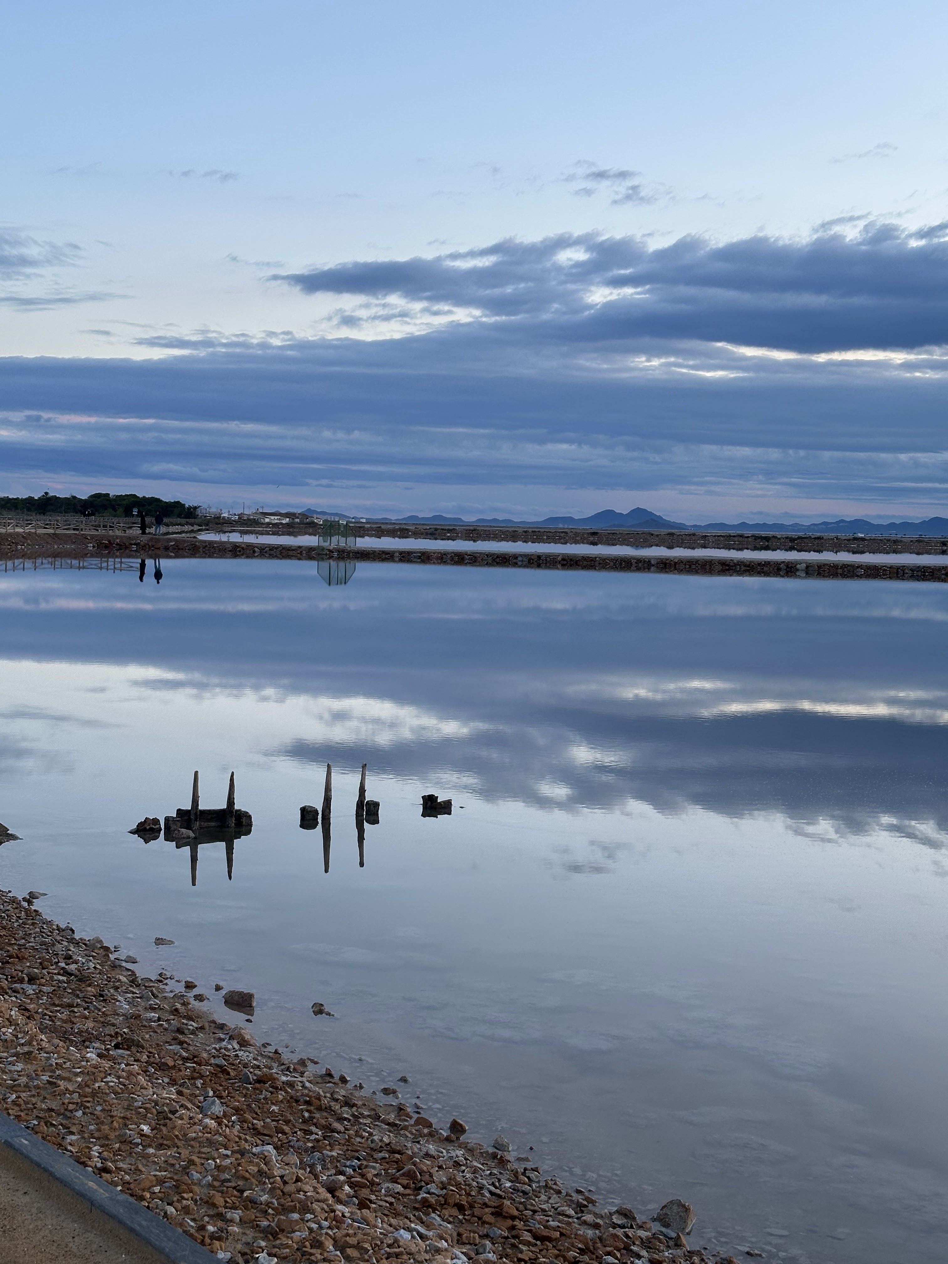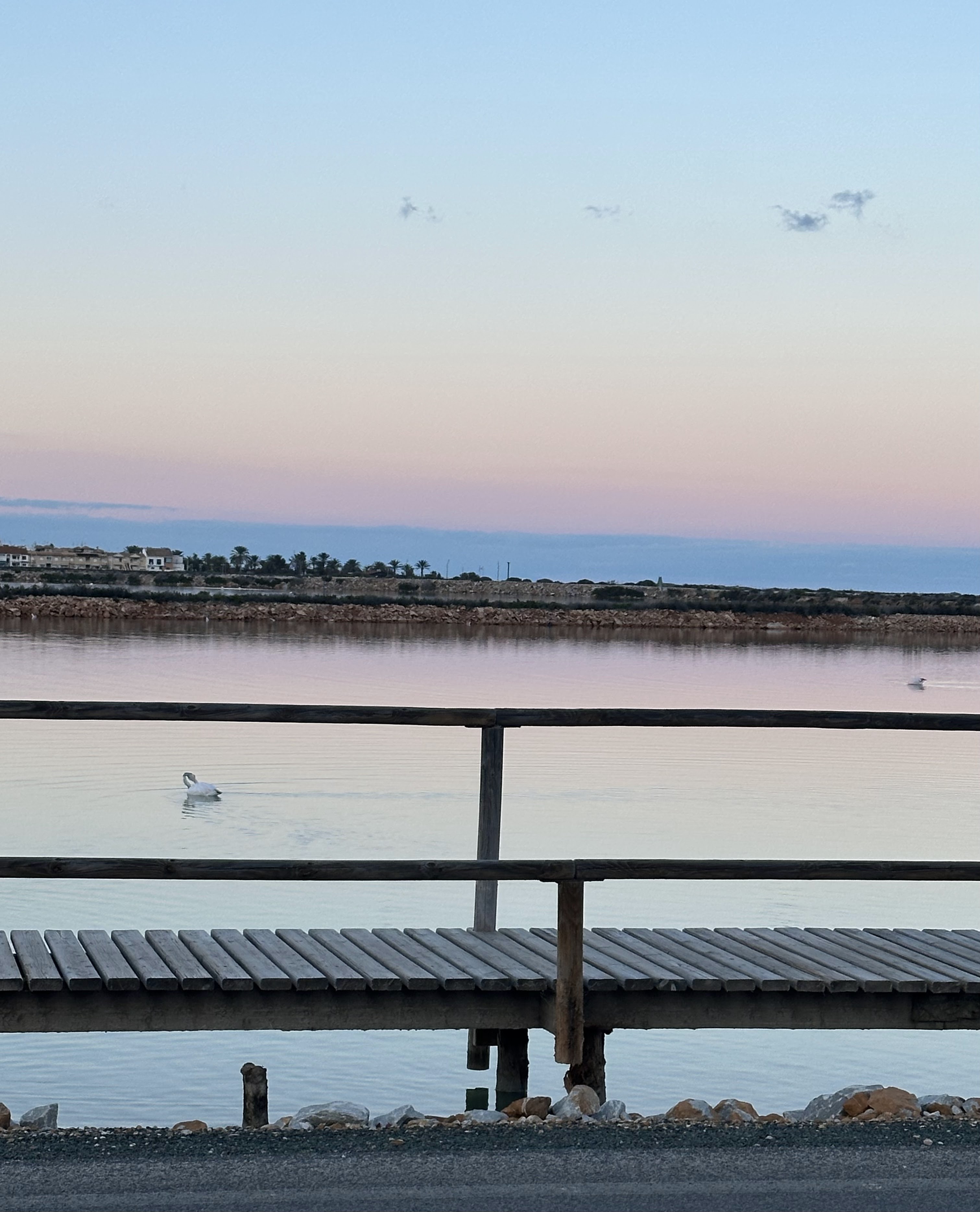 Atrevido de mi por el frío que hacía, pero eso sí abrigado hasta las «pestañas», bajé (está a 12 min andando/900 m.aprox.) a ver si pillaba una bonita puesta de sol en las Salinas de San Pedro. La mejor foto la habéis visto en la portada de este post.