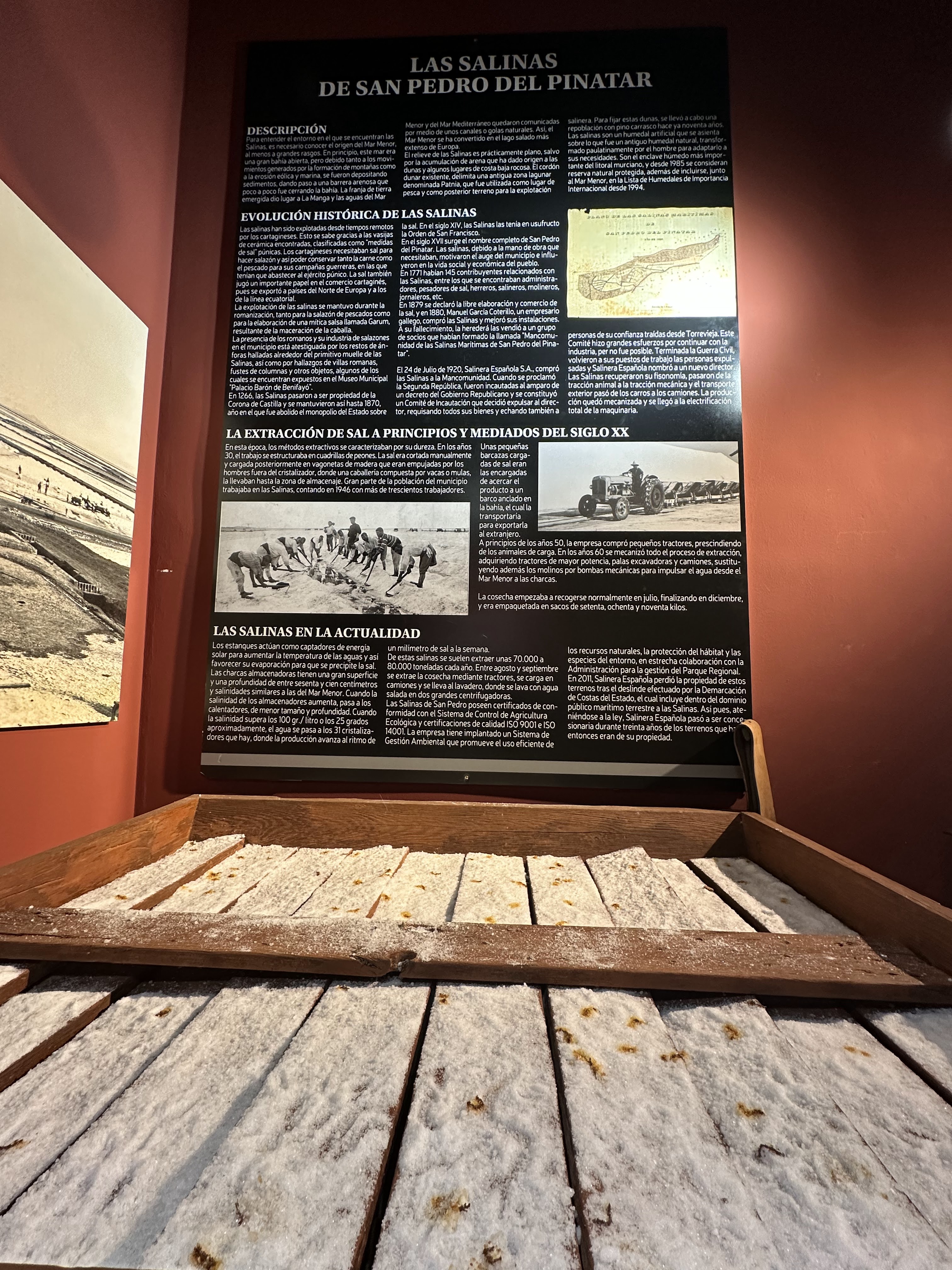 Etnografía: Este apartado está dedicado por un lado a la burguesía que se asentó en San Pedro del Pinatar a finales del siglo XIX, construyendo sus residencias de verano y participando en la vida social del momento, y por otro lado a las gentes “de a pié”, que con su trabajo y esfuerzo consiguieron levantar el municipio con algunos de los principales oficios que fueron el motor de la economía del momento como la pesca, la agricultura, los salazones y la explotación salinera.