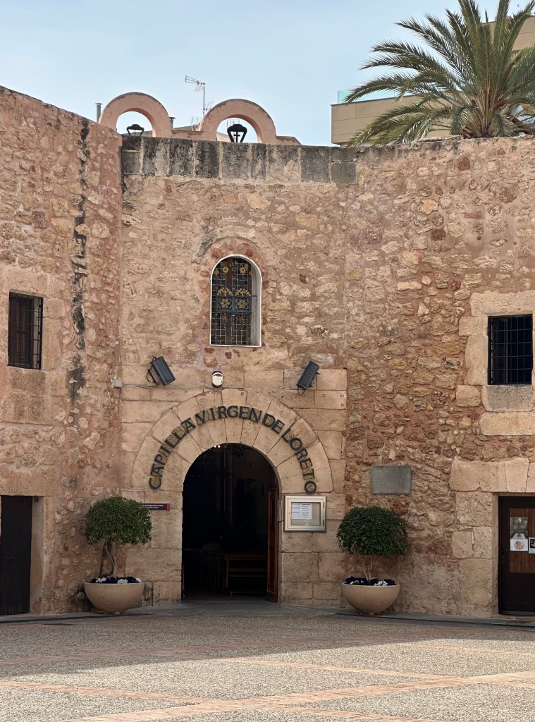 «La Capilla de la Virgen de Loreto, Patrona de Santa Pola, está ubicada en el Baluarte del Rey y constituye un espacio religioso secular desde los orígenes del Castillo. De siempre es muy frecuentada por los vecinos de Santa Pola y por los visitantes.