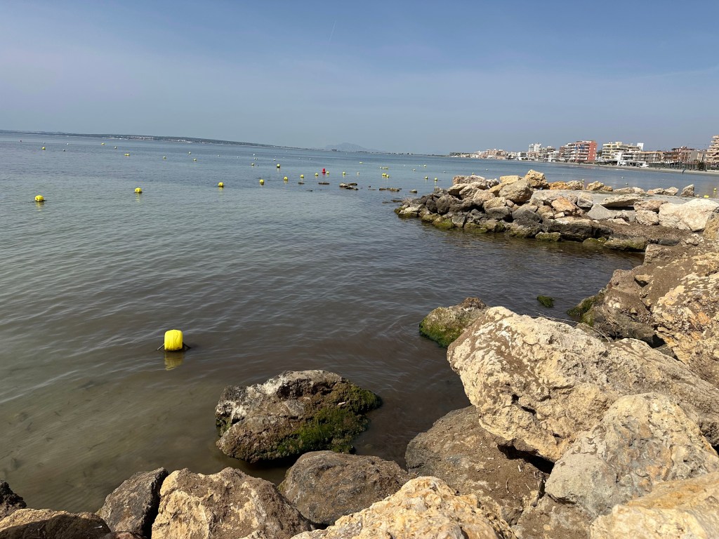 Estas calas de fondo rocoso fueron regeneradas en 1990 con arena de fondos marinos cercanos.»