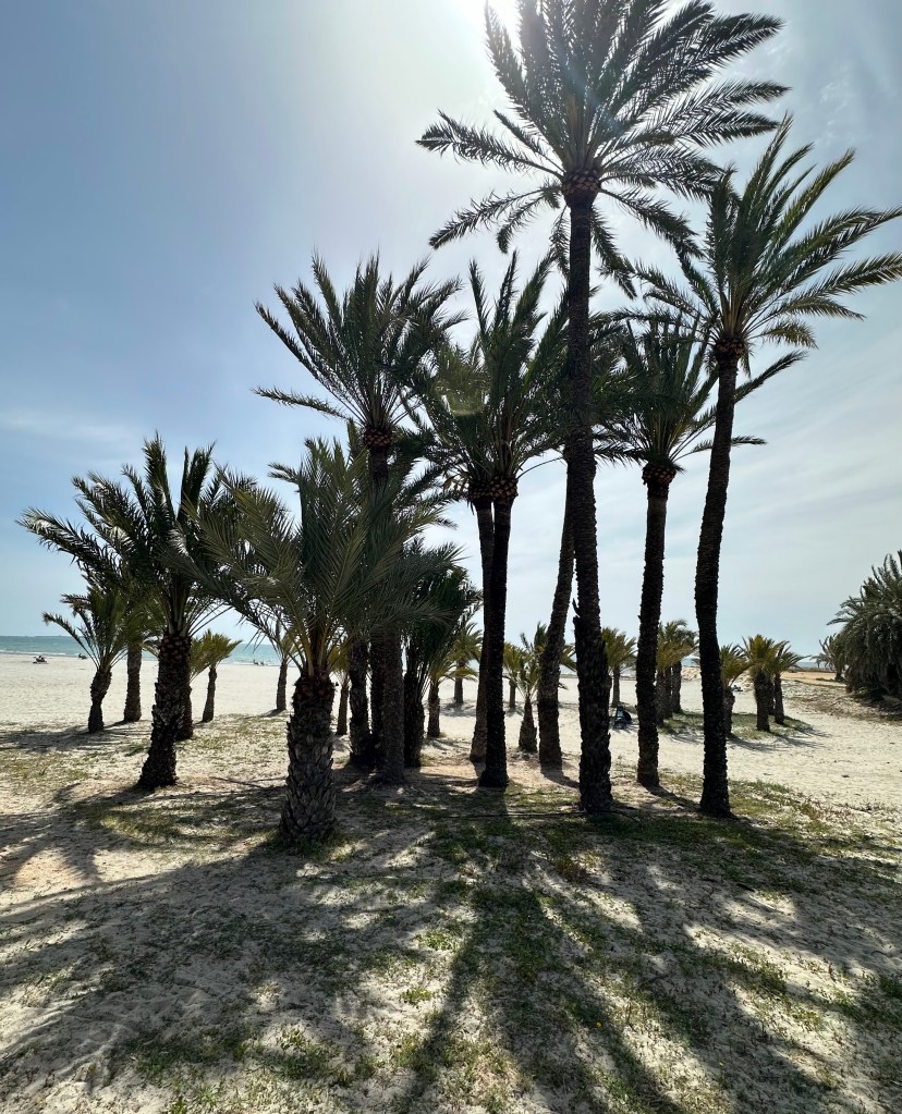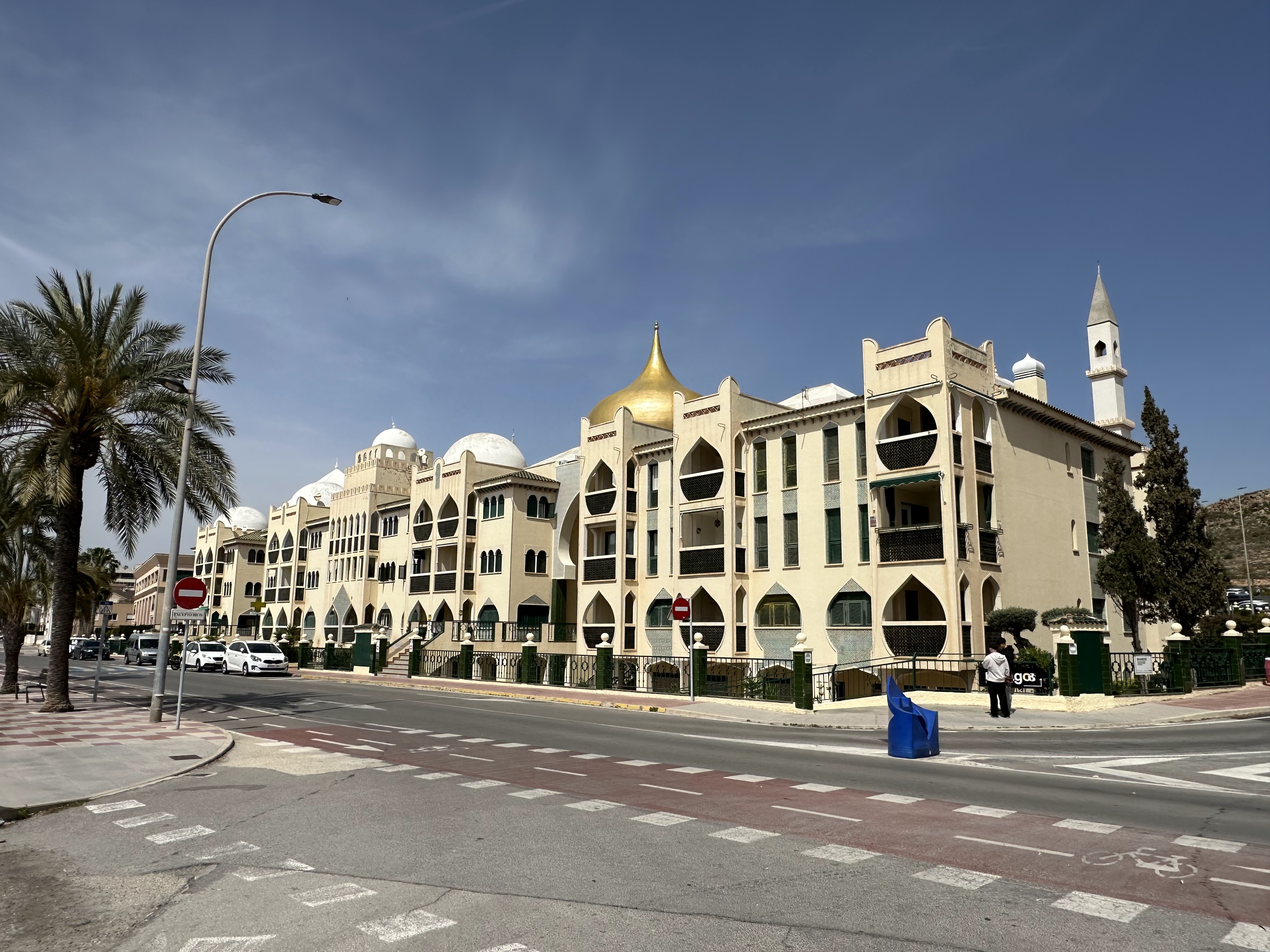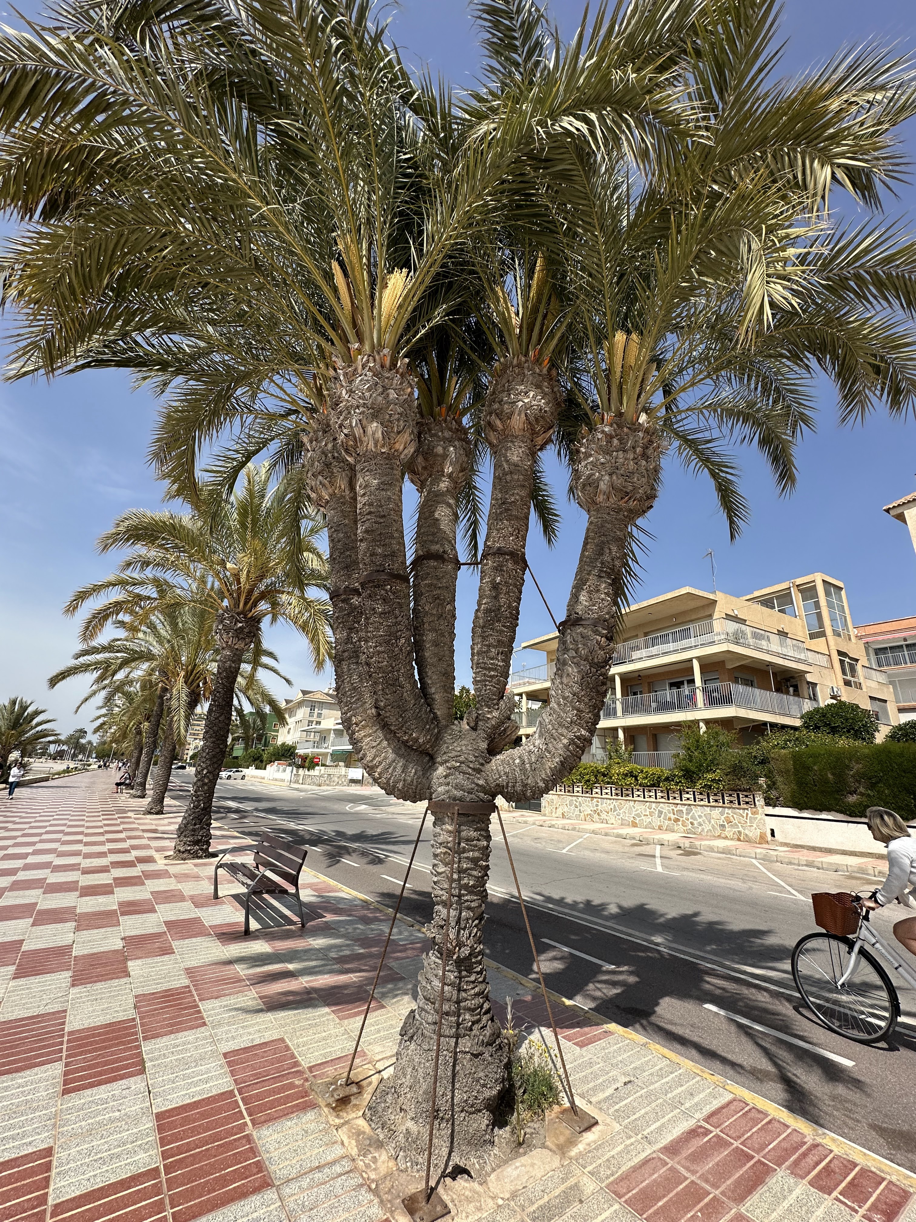 Tras los juegos de pelota, fútbol y voleibol en la playa de Levante, tras la plaza Dr.Rodriguez de la Fuente y estas calas, podréis ver junto a la carretera y paseo (av.Stgo.Bernabeu), la curiosa palmera de los cinco brazos.